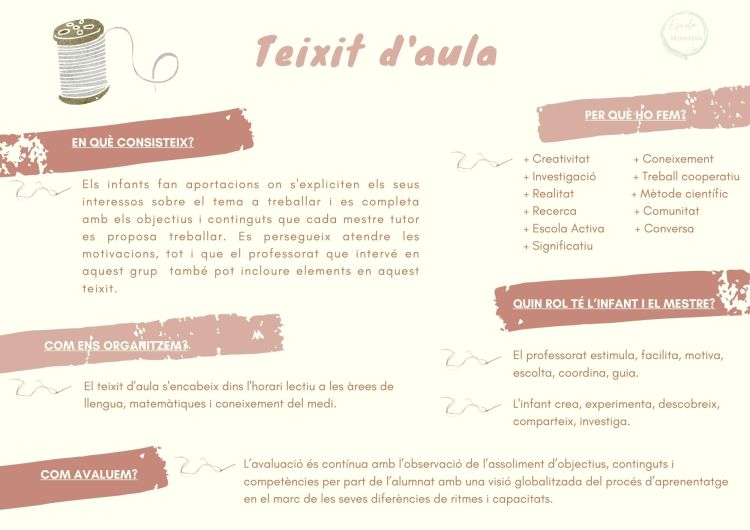 El nostre projecte de centre “Teixint Aprenentatges” ha estat reconegut com a projecte d’innovació educativa pel Departament d’Ensenyament a la convocatòria del passat curs 2022-2023. Per a més informació sobre el reconeixement podeu fer clic a l’enllaç.